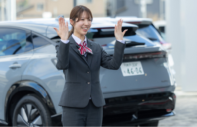 クルマの専門知識と人とのコミュニケーションをつなぐ「テクニカルアドバイザー」。お客さまの不安に寄り添い、テクニカルスタッフと協力しながら最適な対応を行うことで、信頼関係を築いていきます。学べる環境と支え合う風土の中で、未経験からでも安心して成長できる職種です。