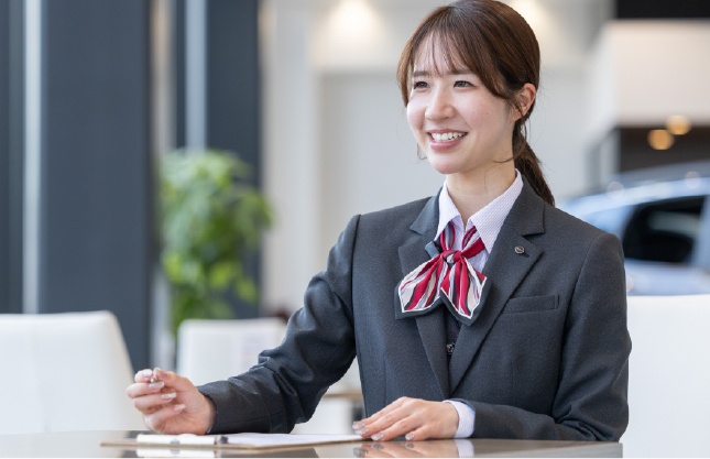 テクニカルアドバイザーは、ご来店されたお客さまの受付対応から、点検・修理内容の説明、見積作成、精算までを一貫して担当します。お客さまの「調子が悪い」「音が気になる」といった言葉の裏にある不安を丁寧に聞き取り、テクニカルスタッフと連携しながら状況を正確に把握することが重要な役割です。整備の専門用語をそのまま伝えるのではなく、お客さまに分かりやすい言葉へ置き換えて説明することで、安心してクルマを任せていただける関係を築いていきます。クルマの知識は入社後に身につけられるため、人と接することが好きな方が活躍できる仕事です。