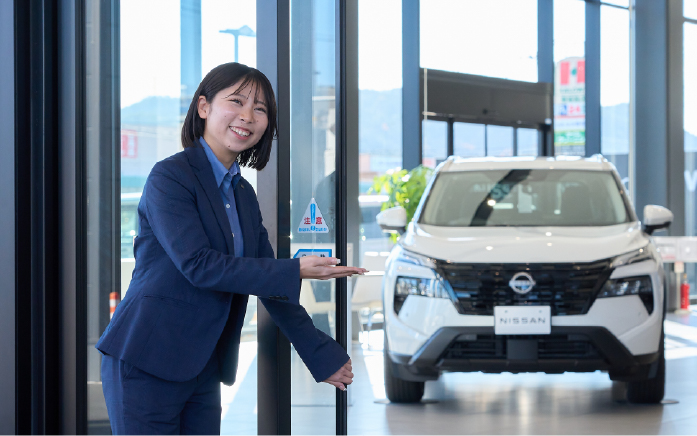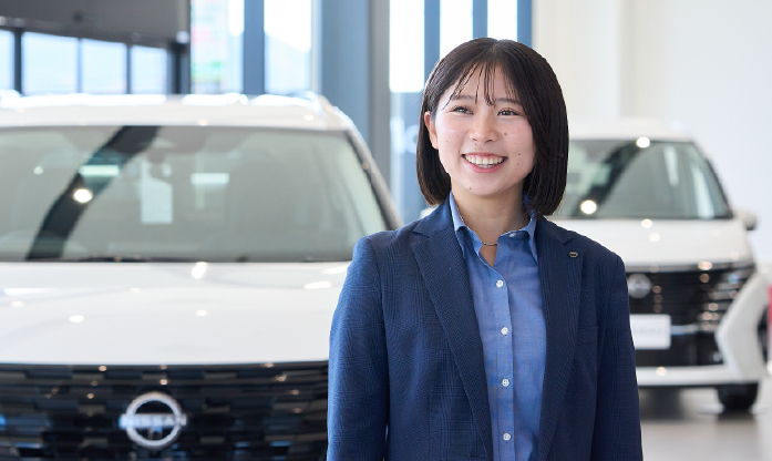 学生時代に接客業のアルバイトをしていたこと、祖父や父親が日産車に乗っていたことから馴染み深い企業ということで兵庫日産へ入社。若手の成績優秀者が得られる新人賞を受賞するなど、成長意欲が高く、日々の業務に精力的に取り組んでいる。