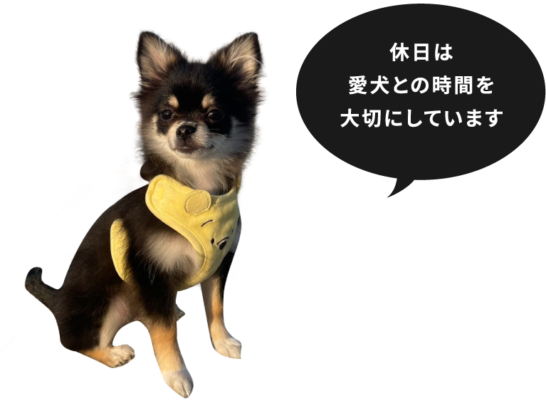 旅行と愛犬との時間が大きな癒しになっています。国内外問わず旅行が好きで、これまで韓国や東京、今後はハワイへの旅行も予定しています。最近は愛犬と一緒に過ごす時間を特に大切にしており、休日はドッグランや公園へ出かけたり、犬と泊まれる宿を探して一緒に旅行をしたりしています。